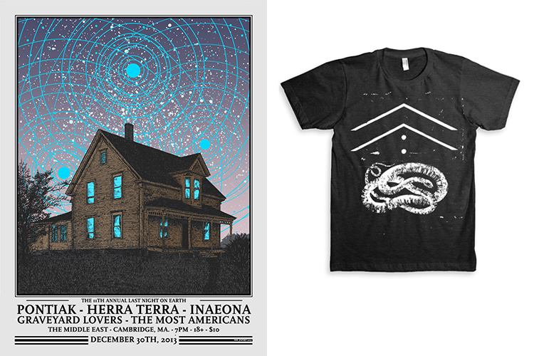 Lately, I've really been digging through the portfolio of Portland, Maine's Kris Johnsen. His primary work seems to be Show Posters with an incredibly amount of fine line work. There's also a solid amount of hand drawn type, fine textures and a handful of ambiguously awesome t-shirts.