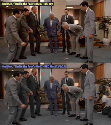 If you missed it, HBO released 4K restorations of Mad Men. Except they didn't really watch it for quality control and let some scenes slip through with visible crew members. Honestly, I thought this image was AI when I saw it. Surely HBO and Mad Men and AMC and Matthew Weiner's people wouldn't be so sloppy? And the comments on that Bluesky post are very.. very funny. It's fake, right?
