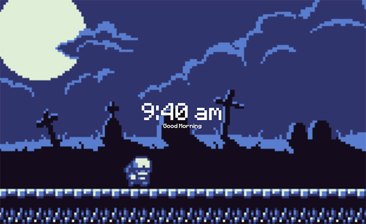 The offerings over at 8-Bit Dash are oddly compelling. Full browser animations of landscapes and gameplay displaying the time and a cheery message. It is, obviously, meant to be a screensaver but it's also equally entertaining to browse through them all and become entranced by the looping bits of animation. At least for me.