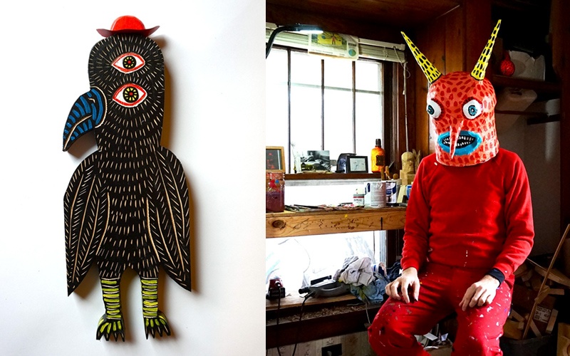 The "Wei wu wei weird and wonderful" world of Brett Douglas Hunter is a folk art extravaganza. There are bizarre woodcut characters, enormous snakes, hand crafted ritual masks and eyes. Lots and lots of eyes.