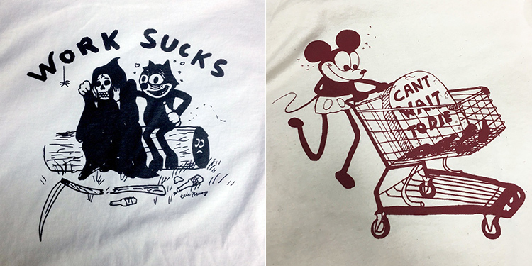 There must be some additional repository of Eric Kenney works out there that I haven't stumbled upon yet. I've done a deep dive into his blog, his Instagram and his phenomenal store but I need more. There's a very 1950's Flash Tattoo vibe to a lot of it. I particularly enjoy the repetition of characters - drunk cats, crazy grim reapers and copyrighted rats are among the cast.