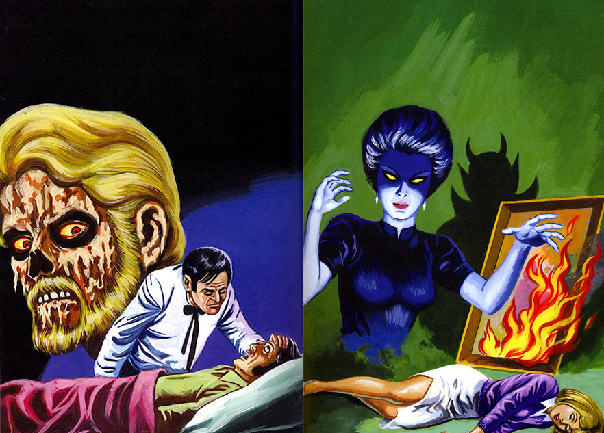 These artists produced work for Mexican comic books and pulp magazines during the fifties, sixties, and seventies. Unfortunately, most were treated like casual labourers, hired on a daily or weekly basis. They painted with tempera on wood or cardboard. It was cheap and fast. The demand for their work was high. During the mid-1970s, an estimated 56-million comic books were produced every month in Mexico. The population of Mexico at that time was 65-million.