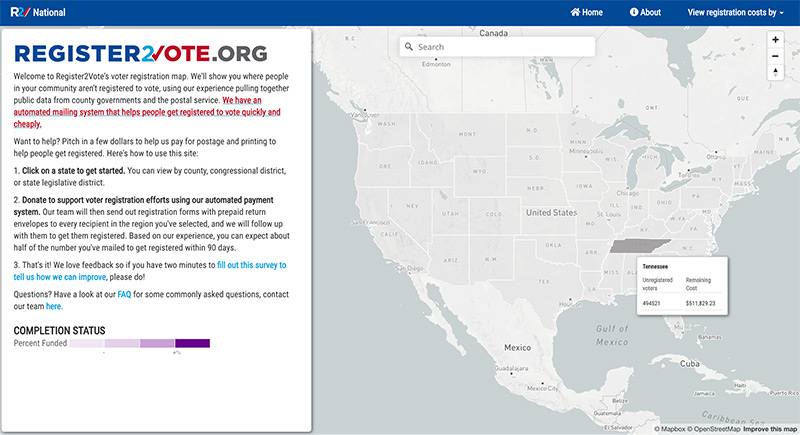 Register 2 Vote Registration Map.