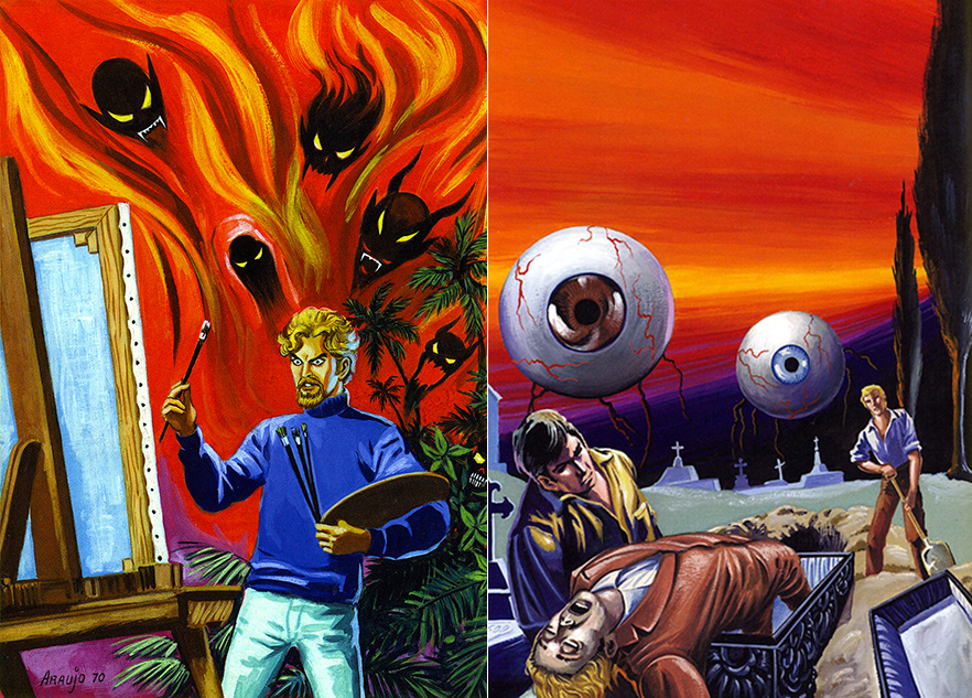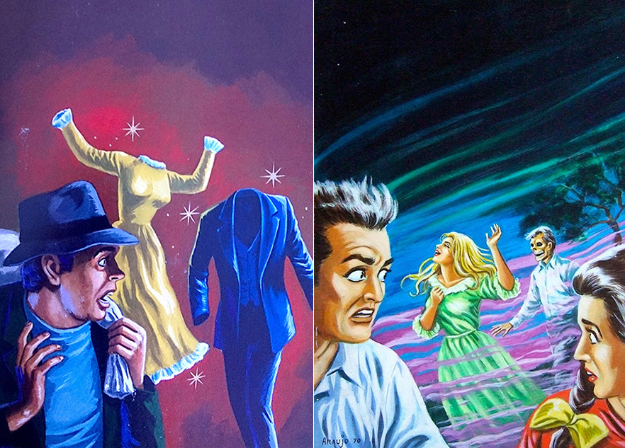 These artists produced work for Mexican comic books and pulp magazines during the fifties, sixties, and seventies. Unfortunately, most were treated like casual labourers, hired on a daily or weekly basis. They painted with tempera on wood or cardboard. It was cheap and fast. The demand for their work was high. During the mid-1970s, an estimated 56-million comic books were produced every month in Mexico. The population of Mexico at that time was 65-million.HT mkshphrd.