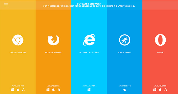 The function of Burocratik's Outdated Browser is a familiar one - present your more legacy browser users with a prompt to get their act together and upgrade! I don't exactly agree with the mentality - particularly if you consider that most people that haven't upgraded probably can't upgrade (see IT lockdowns or just outdated computers that don't meet requirements to keep up) - but I do think it looks quite nice, as do the explanation pages. So, there's that at least!