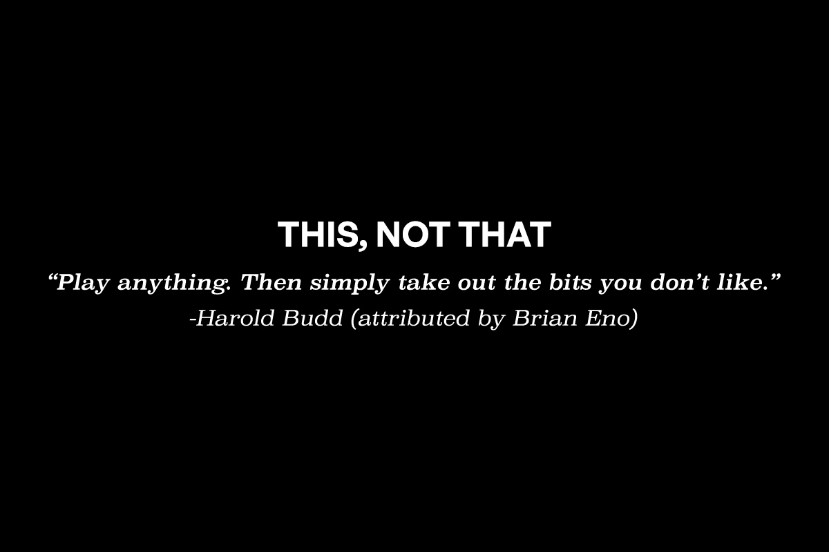 But that's all to say, he has a wealth of creative experience and I am, personally, a fan of how he expresses it. He recently posted this excellent piece about the art of editing - This, Not That. (or Editing as a Creative Act): A Provocation.